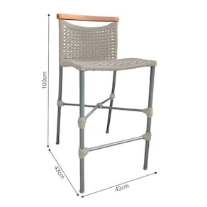 Kit 2 Banquetas Em Corda Náutica Base Em Alumínio Cinza Com Detalhe Em Madeira Areia Bege