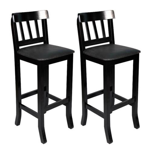 Kit 2 Banquetas Fixas Pretas Mineira Em Madeira Maciça Estofadas Pretas Para Restaurantes - Cor: Preto