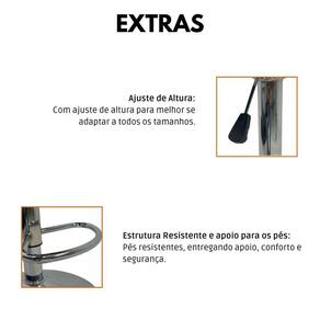 Base e Apoio de Pés: Aço cromado com regulagem de altura e assento giratório
