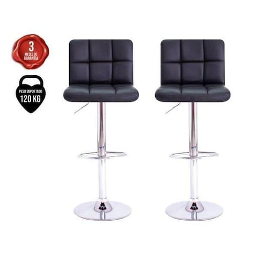 Kit 2 Banquetas Gomos Preta Bem Vindo a Cadeiras IncKit 2 Banquetas Alta Para Cozinha Gomos Giratória PretaAs Banquetas Gomos são uma ótima escolha para fazer parte de ambientes como cozinha, bar, balcão, bistrô entre outros locais. As Banquetas Gomos são ideais para quem está em busca de conforto e um design diferenciado.Um diferencial importante destas Banquetas é que elas são estofadas e revestidas, este material proporciona mais resistência, elegância e sofisticação à cadeira.Aliando elegância e conforto, a Banqueta Gomos Confort é uma opção diferenciada para quem está em busca de um móvel para ambientes de lazer e interação social. Banqueta versátil e com um toque vintage Essa banqueta confort pode ser usada tanto na cozinha, como para áreas de churrasco e até mesmo em espaços gourmet. Além da dupla altura, o assento desse móvel possui uma costura que ressalta os gomos do design, deixando a banqueta com um toque bem víntage e perfeito para quem adora um item clássico e elegante para incorporar em sua decoração.Mais resistência e qualidade A Banqueta Gomos Confort pesa cerca de 7,5 kg e é confeccionada em aço cromado, o que garante alta resistência. Já o estofado é revestido em PU, o que aumenta a durabilidade do mobiliário, mas sem deixar o conforto de lado. Leve mais sofisticação e charme para a sua decoração com a Banqueta Gomos Confort Especificações técnicas Banqueta Gomos Confort Altura Total: Alta 110 cm - Baixa 90 cm Altura do Chão Até o Assento: Alta 87 cm - Baixa 66 cm Profundidade: 52 cm Largura: 50 cmPerguntas Frequentes:1- Vem desmontadas R: Elas vem pré montadas, basta fixar a base no assento, e ainda acompanha um manual de montagem, é bem simples2- Possuem base para não riscar o chãoR: Sim, possuem uma base de borracha para não riscar o chãoIMPORTANTE: Em regiões litorâneas, devido a salinidade no ar, não há garantia contra corrosão considerando-se como tal a região que distar até 50 km da costa marítima. Também não há garantia se a corrosão perfurante decorrer do uso indevido do produto. Observação: Pontos de amarelamento não são corrosão, mas apenas manchas que precedem o efeito corrosivo e surgem quando não há a devida manutenção do produto. Em condições normais, o amarelamento da superfície desaparece com uma simples limpeza realizada com pano e detergente neutro.