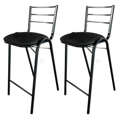 Estrutura em Ferro com assento em CorinoKit 2 Banquetas Gourmet Alta Metal Estilo Industrial Assento Corino Preto