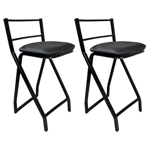 Ferro e CorinoKit 2 Banquetas Gourmet Alta Metal Estilo Industrial Assento Corino Preto