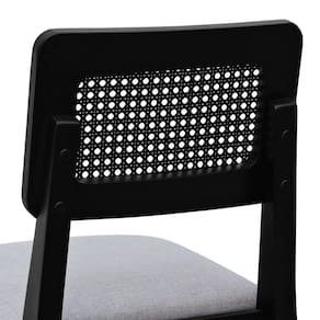 - Materiais: Estrutura madeira de pinus maciço, encosto em anatômico com aplicação de telinha sextavada e assento estofado, espuma D26 e tecido Linho ou Corano