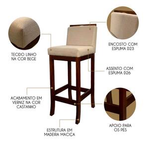 CARACTERÍTICAS TÉCNICAS: - Produzido em Madeira Maciça de Reflorestamento - Acabamento em Verniz na cor Castanho - Assento Preenchido com Espuma D26 - Encosto Preenchido com Espuma D23 - Revestimento em Suede na cor Bege *Indicada para Bancadas/Mesas com Alt. 90/95cm *Kit Composto por DUAS Banquetas Turim *PRODUTO ENVIADO MONTADO.