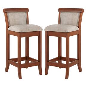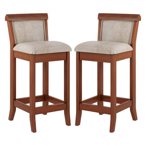 Kit 2 Banquetas Média Estofada Encosto Mônaco 36x90Cm Bancada Madeira Maciça Linho Bege M58