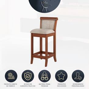 A Banqueta Média Mônaco promete ser o centro das atenções em todos os ambientes. Perfeita para bancada de cozinha américa, balcão, mesa bar, espaço gourmet, cantinho do churrasco e muito mais. Possui uma estrutura reforçada em madeira de taeda com acabamento em verniz que aumenta a sua durabilidade. Possui assento estofada com espuma D23 e tecido linho. O seu ambiente vai ficar muito mais elegante e cheio de charme com os móveis da Rio Madeira Interiores.   Característica do Produto: - Produzida em Madeira Maciça Taeda - Assento Estofado Preenchido com Espuma D23 - Acabamento em Verniz cor Imbuia - Tecido de Alta Qualidade Linho Bege M58 - Produto Entregue Montado   *Kit Composto por 2 Banquetas   Dados Técnicos do Produto: - Altura Total: 90 cm - Altura do Encosto: 26 cm - Altura para Sentar: 65cm - Largura Total: 36 cm - Largura do Assento: 40/35 cm - Profundidade Total: 46 cm - Profundidade do Assento: 36 cm - Peso: 8 kg Embalagem do Produto: Altura Total: 100,5 cm Largura: 50 cm Profundidade: 40 cm Peso: 14 kg Cubagem: 0,205 m³   Informações Adicionais: Garantia para defeitos de fabricação conforme Código de Defesa do Consumidor. *ATENÇÃO: Entregas são feitas em horário comercial. Não nos responsabilizamos pela montagem, subir ou içar o móvel. **As imagens ambientadas são meramente ilustrativas e podem apresentar itens que não compõe o produto, as cores do produto podem variar de acordo com o monitor, a iluminação do ambiente ou sua percepção visual.  ***Limpeza: Deve ser feita com pano macio e seco ou levemente umedecido com água e sabão neutro. Não devem ser utilizados abrasivos.