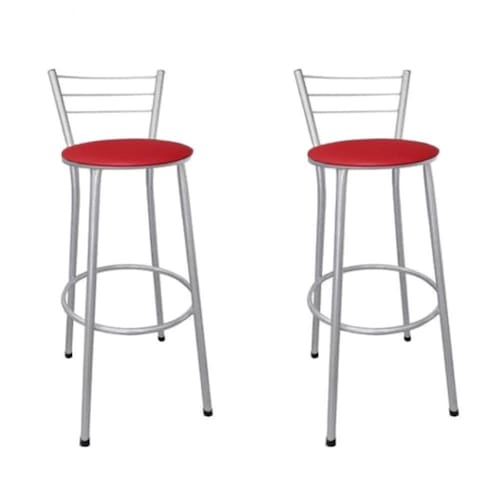 Kit 2 Banquetas Médias Prata com Assento Vermelho Fortmix