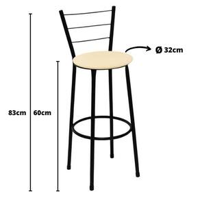 Banqueta Média Itália Preta com Assento Bege Fortmix   Seja para acompanhar um café rápido no início do dia ou aquela confraternização especial com os amigos, a Banqueta Média com Encosto será uma grande aliada na composição do seu espaço. Modelo Média, ela é ideal para acompanhar bancadas e balcões, seja na sala de jantar, espaço de churrasqueira ou até mesmo em seu estabelecimento comercial.   Com design simples que conta com cor sóbria, a peça embeleza o seu espaço ao mesmo tempo que garante a comodidade ideal, afinal, o assento preenchido em espuma recebe superbem o corpo além do suporte para os pés.    Produto que faz toda diferença no seu ambiente.   Características da Banqueta Média com Encosto   Cor da Estrutura: Preta Cor do Assento: Bege Capacidade (kg): 120 kg Material da estrutura: Tubos de Aço carbono (7/8 de polegada) Material do assento: MDF e Espuma Encosto: Arame   Dimensões da Banqueta Média com Encosto    Altura do assento até o chão (cm): 60 Cm Altura do encosto até o chão (cm): 83 Cm Diâmetro do assento: 32 Cm   Conteúdo da Embalagem: 02 Banqueta Média com Encosto   Dicas   Não deixe suas banquetas expostas ao sol por mais de 4 horas. Não use produtos abrasivos na limpeza de suas Banquetas. Usar um pano umedecido na limpeza da Banqueta e, logo em seguida, seque-as com um pano seco.   A tonalidade da cor pode variar de acordo com o lote do fabricante e/ou as configurações de seu monitor.   *Imagens meramente ilustrativas   Garantia   3 Meses contra defeito de fabricação