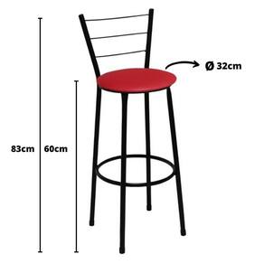 Banqueta Média Itália Preta com Assento Vermelho Fortmix   Seja para acompanhar um café rápido no início do dia ou aquela confraternização especial com os amigos, a Banqueta Média com Encosto será uma grande aliada na composição do seu espaço. Modelo Média, ela é ideal para acompanhar bancadas e balcões, seja na sala de jantar, espaço de churrasqueira ou até mesmo em seu estabelecimento comercial.   Com design simples que conta com cor sóbria, a peça embeleza o seu espaço ao mesmo tempo que garante a comodidade ideal, afinal, o assento preenchido em espuma recebe superbem o corpo além do suporte para os pés.    Produto que faz toda diferença no seu ambiente.   Características da Banqueta Média com Encosto   Cor da Estrutura: Preta Cor do Assento: Vermelho Capacidade (kg): 120 kg Material da estrutura: Tubos de Aço carbono (7/8 de polegada) Material do assento: MDF e Espuma Encosto: Arame   Dimensões da Banqueta Média com Encosto    Altura do assento até o chão (cm): 60 Cm Altura do encosto até o chão (cm): 83 Cm Diâmetro do assento: 32 Cm   Conteúdo da Embalagem: 02 Banqueta Média com Encosto   Dicas   Não deixe suas banquetas expostas ao sol por mais de 4 horas. Não use produtos abrasivos na limpeza de suas Banquetas. Usar um pano umedecido na limpeza da Banqueta e, logo em seguida, seque-as com um pano seco.   A tonalidade da cor pode variar de acordo com o lote do fabricante e/ou as configurações de seu monitor.   *Imagens meramente ilustrativas   Garantia   3 Meses contra defeito de fabricação