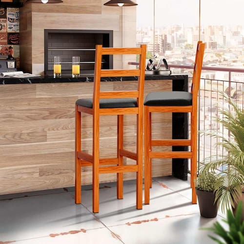 Kit 2 Banquetas Para Bancada Madeira Maciça Assento Estofado Preto Gal Shop JM