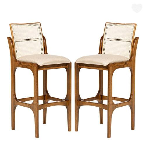 A Banqueta Alta Lisboa é o modelo ideal para complementar o seu ambiente. Dispõe de um design atual com assento estofado e encosto em rattan. As banquetas são móveis versáteis que podem ser utilizados em diversos ambientes e funcionalidades, permitindo composições na decoração e agregando conforto e sofisticação ao ambiente. Podem ser utilizadas em bancadas de salas conjugadas, mesas bistrô em sacadas gourmet ou aonde você precisar. Produzida com madeira maciça, garantindo a sua durabilidade e vida útil. CARACTERÍSTICA TÉCNICAS: - Produzido em Madeira Maciça Sustentável - Acabamento em Verniz na cor Imbuia - Assento Estofado Preenchido com Espuma D23 - Encosto com Revestimento em Rattan em Fibra de Algodão Sextavada na cor Bege - Tecido de Alta Qualidade em Linho na cor Bege M58 - Banqueta Entregue Montado * Kit Composto por DUAS Banquetas INFORMAÇÕES TÉCNICAS: - Altura Total: 108 cm - Altura até o Assento: 75 cm - Largura Total: 43 cm - Profundidade Total: 46 cm INFORMAÇÕES ADICIONAIS: Garantia para defeitos de fabricação conforme Código de Defesa do Consumidor. - ATENÇÃO: Não nos responsabilizamos pela montagem, subir ou içar o móvel. - As imagens ambientadas são meramente ilustrativas e podem apresentar itens que não compõe o produto, as cores do produto podem variar de acordo com o monitor, a iluminação do ambiente ou sua percepção visual. - Limpeza: Deve ser feita com pano macio e seco ou levemente umedecido com água e sabão neutro. Não devem ser utilizados abrasivos.