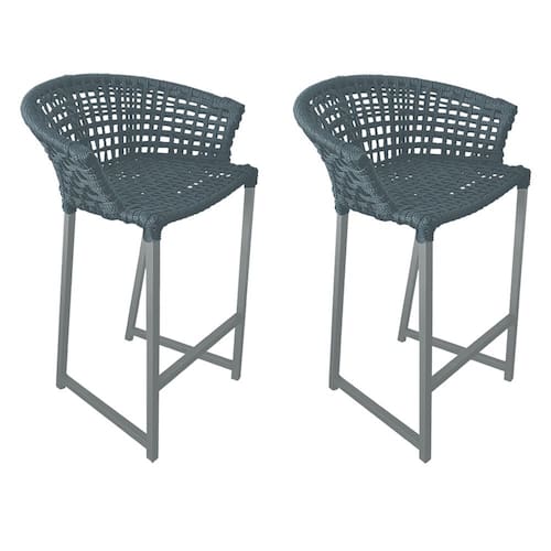 Kit 2 Banquetas Reis em Corda Náutica e Base em Alumínio Cinza para Área Gourmet - Externa Cinza