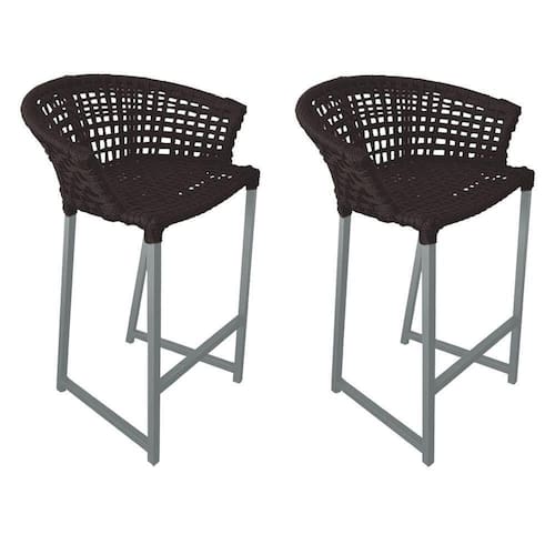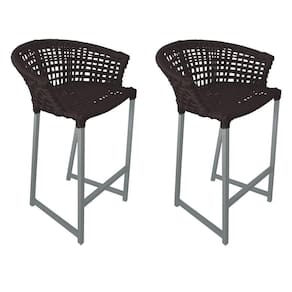 Kit 2 Banquetas Reis Em Corda Náutica E Base Em Alumínio Cinza Para área Gourmet Externa Marrom