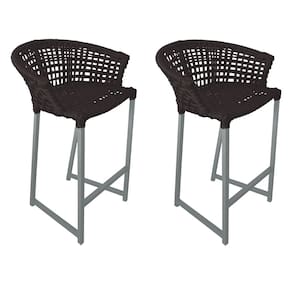 Kit 2 Banquetas Reis em Corda Náutica e Base em Alumínio Cinza para Área Gourmet - Externa Marrom
