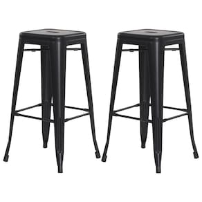 Kit 2 Banquetas Tolix Iron Design Industrial Preto Fosco 76 cm Aço Cozinha Bar Bistrô Bancada