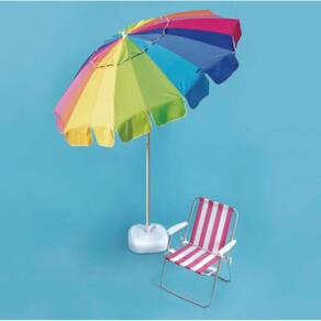 Produzida em polietileno, ela pode ser preenchida com 18l de água ou 22kg de areia para fixar seu guarda-sol em qualquer lugar.