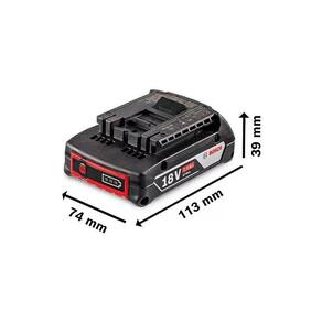 O kit vem com: 2 Baterias GBA 18V 2,0 Ah, 1 manual de instrução da bateria, 1 carregador GAL 18V-20, 1 manual de instrução carregador. Garantia 2 anos Bosch.