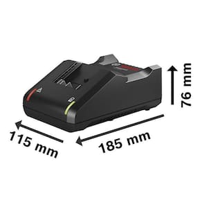 Com uma corrente de carga de 4Ah, carrega a bateria GBA 18V 4.0ah até 80% em apenas 48 minutos e a GBA 18V 2.0ah até 80% em 24 minutos