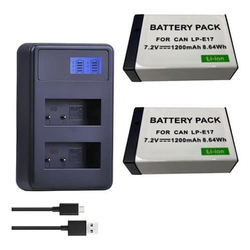 Kit 2 baterias lp-e17 para canon eos rebelt6i-750d, t6s-760d Conteúdo da embalagem: 2 baterias + 1 carregador Especificações: capacidade: 1200 mah tipo: li-ion voltagem: 7.2v número do modelo: lp-e17 peso: 30g Benefícios: 1200 mah alto desempenho mais de 300 ciclos Características: bateria recarregável de ótima qualidade, fabricada com as melhores células disponíveis no mercado, aumentando o tempo de vida útil. não apresenta efeito memória, o que permite recarregar a bateria parcialmente esgotada sem comprometer a performance. sistemas internos de proteção contra excesso de voltagem, excesso de corrente e sobrecarga protegem a bateria de alguma eventual Condição inadequada de uso. Câmeras / filmadoras compatíveis: Canon eos rebel t6i / 750d Canon eos rebel t6s / 760d Canon eos rebel sl2 / 200d Canon eos rebel sl3 / 250d Canon eos rebel t7i / 800d Canon eos rebel t8i / 850d Canon eos m3 Canon eos m5 Canon eos m6 Canon eos m6 mark ii Canon eos rp do vendedor: 90 dias Marca: Batterypack
