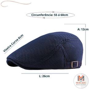 Características kit 2 boinas masculina verão Tecido: poliéster Tamanho: ajustável, circunferência da cabeça: 55cm á 60cm Aba: 5cm Cor: branco e azul Tamanho: 55 á 60cm