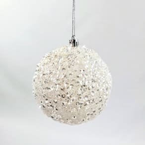 Kit 2 bola de natal branca decorada 10cm para árvore luxo