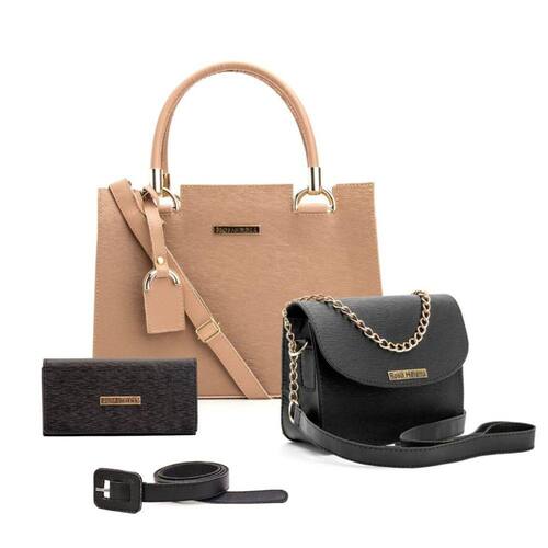 Kit 2 Bolsas Transversais Femininas Com Uma Carteira e Cinto de Qualidade Praticidade No Dia a Dia - Bege Claro - UN
