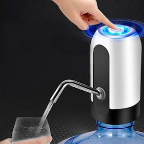 Kit com 2 bombas elétricas automáticas para galões de até 20 litros. Compatível com galões de 10L, 15L e 20L. Bateria recarregável via USB com autonomia para vários dias. Sistema automático com um toque. Livre de BPA. Instalação fácil. Altura: 13cm. Diâmetro de encaixe: 7,3cm. Comprimento do tubo de água: 51cm.Água gelada