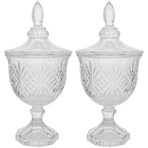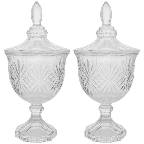 Kit 2 Bomboniere Potiche de Cristal Baleiro com Pé e Tampa Dublin Lyor Decorativo Transparente.