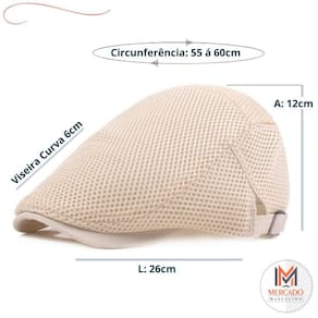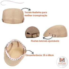 Características kit 2 boinas masculina verão Tecido: poliéster Tamanho: ajustável, circunferência da cabeça: 55cm á 60cm Aba: 5cm Marca: Não Informado Ean: 7599683453607