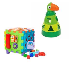 Kit 2 Brinquedos Didáticos Interativos Cubo Grande + Tucano