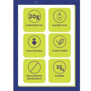 Ingredientes: xarope de tapioca, água, isomaltulose palatinose , beterraba em pó, cafeína natural, ácido cítrico, sulfato de magnésio, cloreto de sódio, citrato de potássio, acerola em pó, aroma natural de limão.