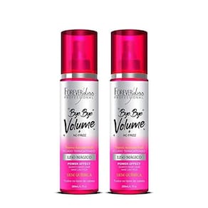 O Spray Bye Bye Volume e No Frizz Liso Mágico 200ml é um spray alinhador dos fios que conta com proteção térmica. É ideal para a finalização de cabelos com excesso de volume e incômodo de frizz, já que forma uma película protetora contra a umidade. Seu uso previne pontas duplas, nutre, hidrata e proporciona brilho intenso. Conta com nanotecnologia aliada a ingredientes nobres tais como semente de linhaça. Além disso, é livre de sulfatos, petrolatos e óleo mineral, por isso, pode ser utilizado em qualquer tipo de cabelo e é compatível com todos os tipos de química. Pode ser, inclusive, utilizado como um potencializador e prolongador da durabilidade de progressivas, Botox e selagem.