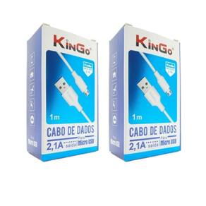 Kit 2 Cabos Micro-USB V8 Kingo Branco 1m 2.1A para Galaxy A02 É super resistente, este cabo Micro-USB V8 2.0 conecta seu dispositivo diretamente a seu computador para sincronizar de forma rápida e eficiente seus dados ou carregar seu aparelho. Conecte-se ao computador para sincronização e transferência de dados.