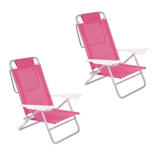 Composição: 02 unidadesCadeira de Alumínio Reclinável Summer 6 Posições Praia Mor Cor Rosa