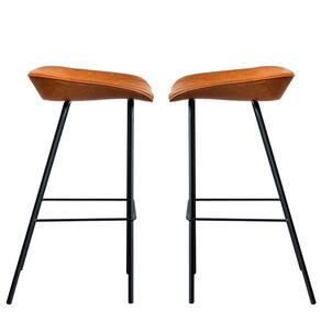 Kit 2 Cadeira Banqueta Industrial Alta Com Assento Estofado Leather EdeCasaMoveis - Marrom
