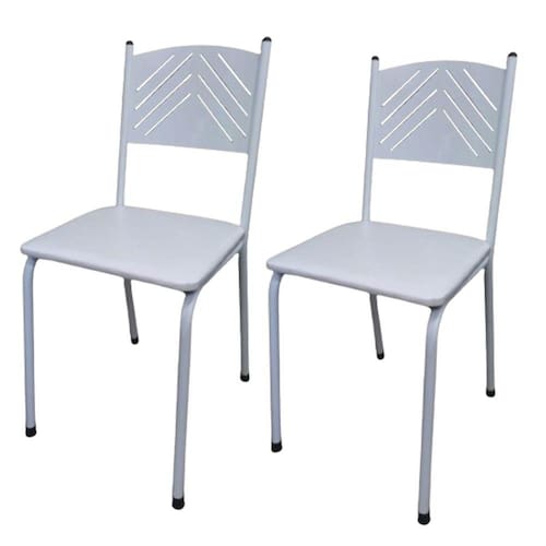 Kit 2 Cadeira Branca de Cozinha Jantar Metal Tubular Almofadada Assento Branco