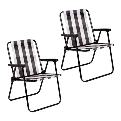 Kit 2 Cadeira de Praia Varanda Xadrez em Aço 110 kg BrancaMor
