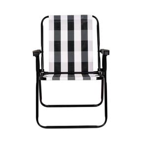 Dobrável e fácil de carregar, a Cadeira Xadrez é prática e confortável, perfeita para usar na sala de estar, na varanda, no parque e onde mais você quiser. Muito resistente, tem estrutura fabricada em aço carbono com acabamento em pintura epóxi à pó preta, que proporciona um visual moderno, e peças plásticas em polipropileno, suportando até 110 Kg. Para guardá-la, basta dobrar e colocar em qualquer cantinho da sua casa. Sua tela é produzida em 100% polietileno.