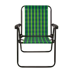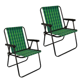 Kit 2 Cadeira de Praia Varanda Xadrez em Aço 110 kg Verde Mor