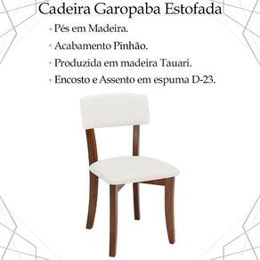 Kit 2 Cadeira Decorativa Estofada Pés Madeira Pinhão, traz o conforto que você merece, levando muito mais harmonia e leveza para seus espaços. Estrutura produzida com madeira de tauari proporcionando maior durabilidade e resistência à peça. Compostas por pés em madeira com acabamento em pinhão, encosto e assento estofado em espuma D-23. Suportando até 120 kg cada. Possui design inovador, proporcionando graciosidade e elegância em seus ambientes, ideal para compor sua sala de jantar, sala de estar e cozinha. Este móvel chegará em sua casa separado em 02 volumes.