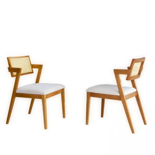 Kit 2 Cadeira Estofada Decorativa Garbo Encosto em Tela Rattan MG Moveleir