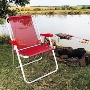 Cadeira Praia Max Alumínio Oversize Vermelho Reforçada Até 140kg Zaka