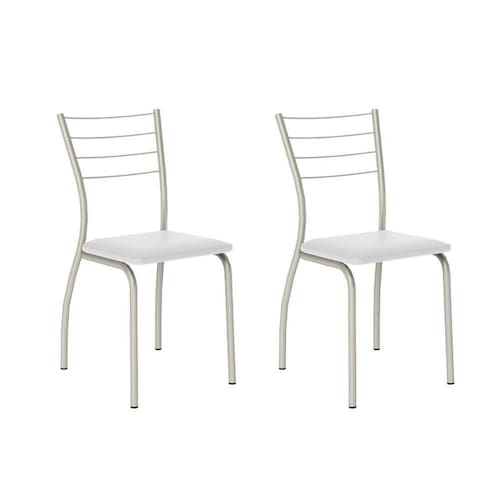 Kit 2 Cadeiras Sala Jantar 1700 2 Un Prata - Assento Courano Branco - Carraro