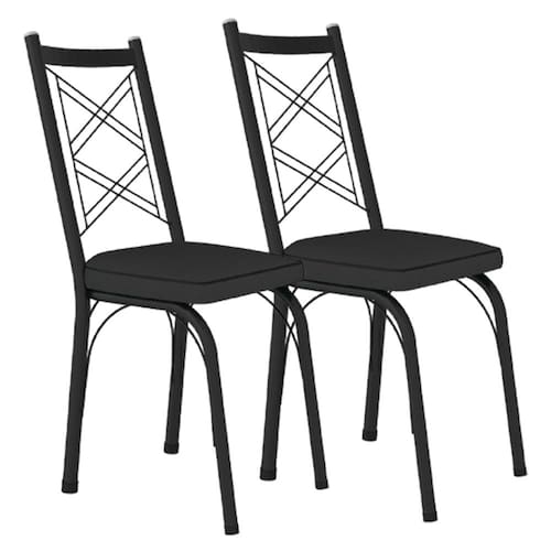 Kit 2 Cadeiras Aço Carbono Tubular Metálica Acabamento Fosco D-28 Julia - Preto