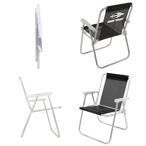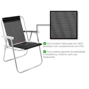 # Cadeira: Tela Poliéster com revestimento PVC, estrutura em alumínio