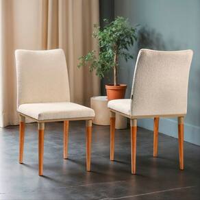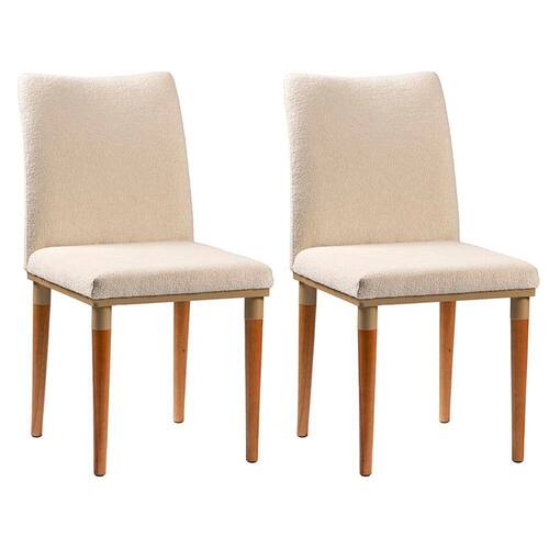 Kit 2 Cadeiras Bouclê e Pés em Madeira Maciça Isa Bege/Champanhe