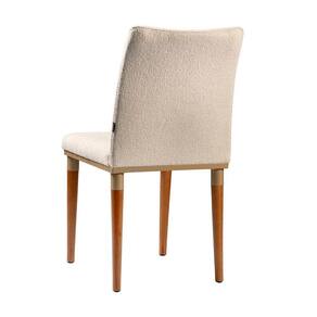O assento e encosto em bouclê, proporcionam um conforto inigualável, perfeito para longas refeições em família ou jantares sofisticados com amigos.