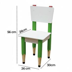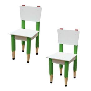 Kit 2 Cadeiras Cadeira Infantil Lápis Verde Assento E Encosto Brancos Para Estudos E Desenhos Mobília Decor Kit 2 Cadeiras Infantil Pé Lápis Borracha Par de cadeiras infantis com pés sextavados em formato de lápis e acabamento Branco TX, ideais para complementar mesas em quartos, brinquedotecas e escolinhas, oferecendo leveza, resistência e um visual divertido.? Dimensões e capacidade (cada): 55 cm de altura total (assento a 29 cm), 26 x 26 cm; 2,4 kg; suporte até 40 kg.?