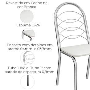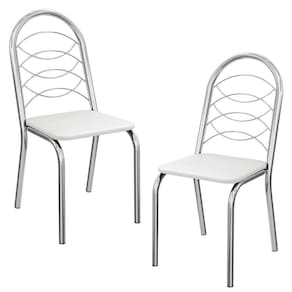 Alumínio, MDP, Espuma, CorinoConjunto 2 cadeiras 2C009, ideais para salas de jantar ou recepções. Estrutura em MDP (15 mm), corpo/pés tubular em alumínio (Tubo 1 1/4" com parede de espessura 0,9mm / Tubo 1" com parede de espessura 0,9mm), encosto com detalhes em arame 0,4mm e 03,7mm. Estofadas com espuma D26 e revestidas em Corino (material sintético que imita couro), além de sapatas para proteção ao piso. Este produto será entregue em 01 volume.