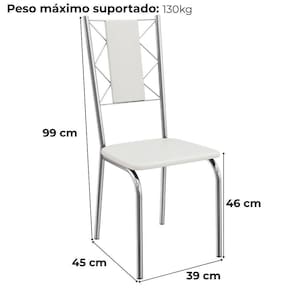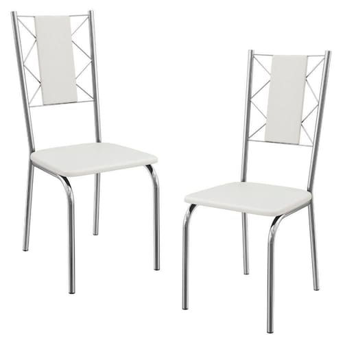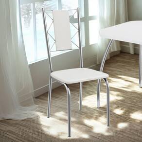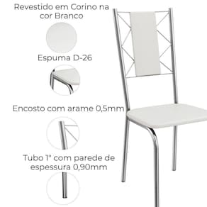 Conjunto 2 cadeiras 2C076, ideais para salas de jantar ou recepções. Estrutura em MDP (15 mm), corpo/ pés tubular em alumínio (Tubo 1 com parede de espessura 0,90mm), encosto com detalhes em arame 0,5mm. Estofadas com espuma D26 e revestido em Corino (material sintético que imita couro), além de sapatas para proteção ao piso. Este produto será entregue em 01 volume.